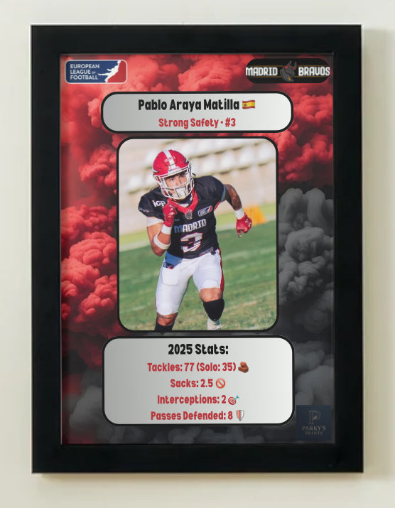 This Pablo Araya Matilla poster is perfect for any American football fan. Featuring the star athlete himself, this poster is a must-have for any sports enthusiast. Show off your love for the game and admiration for Pablo Araya Matilla with this high-quality poster.